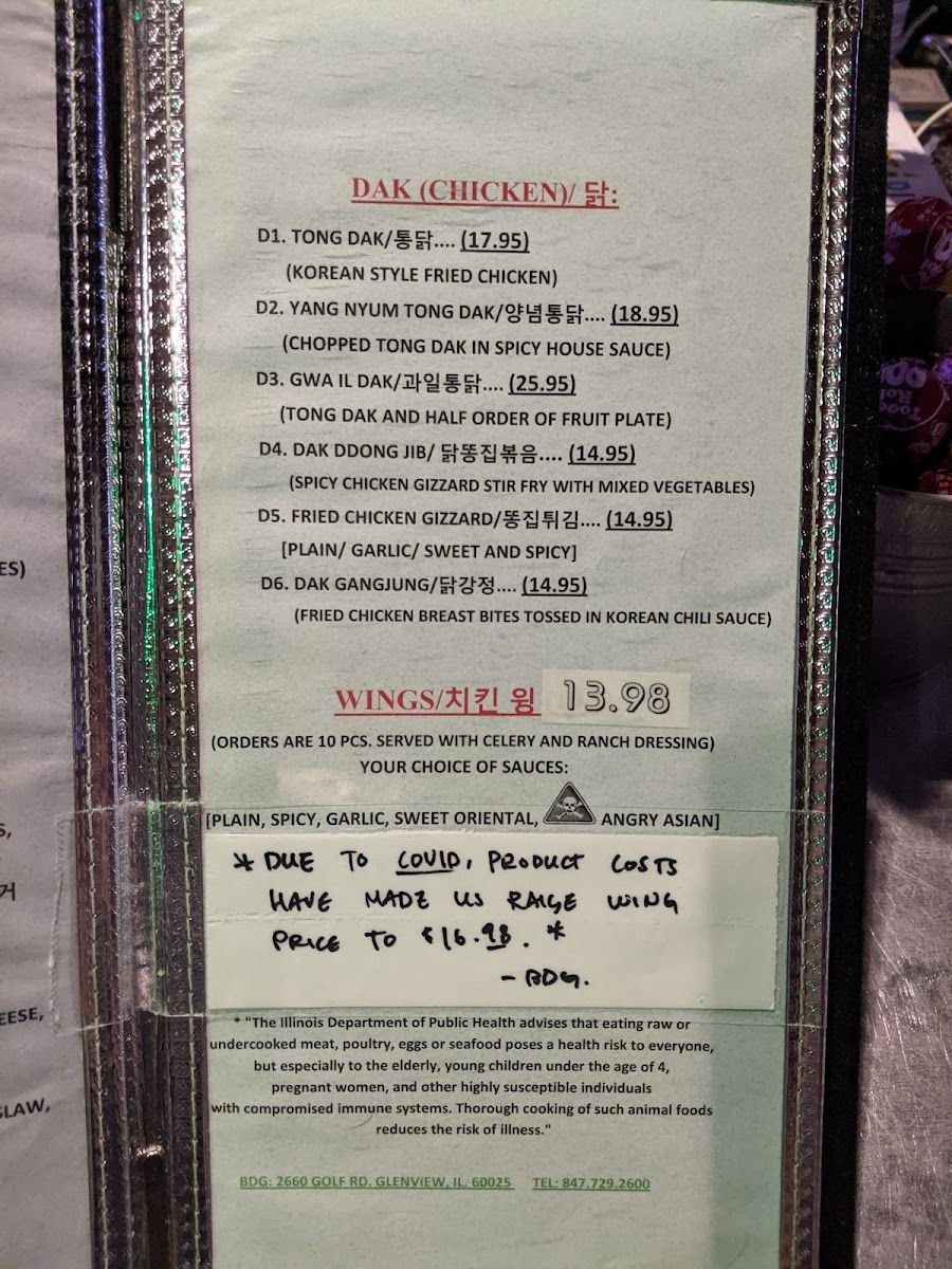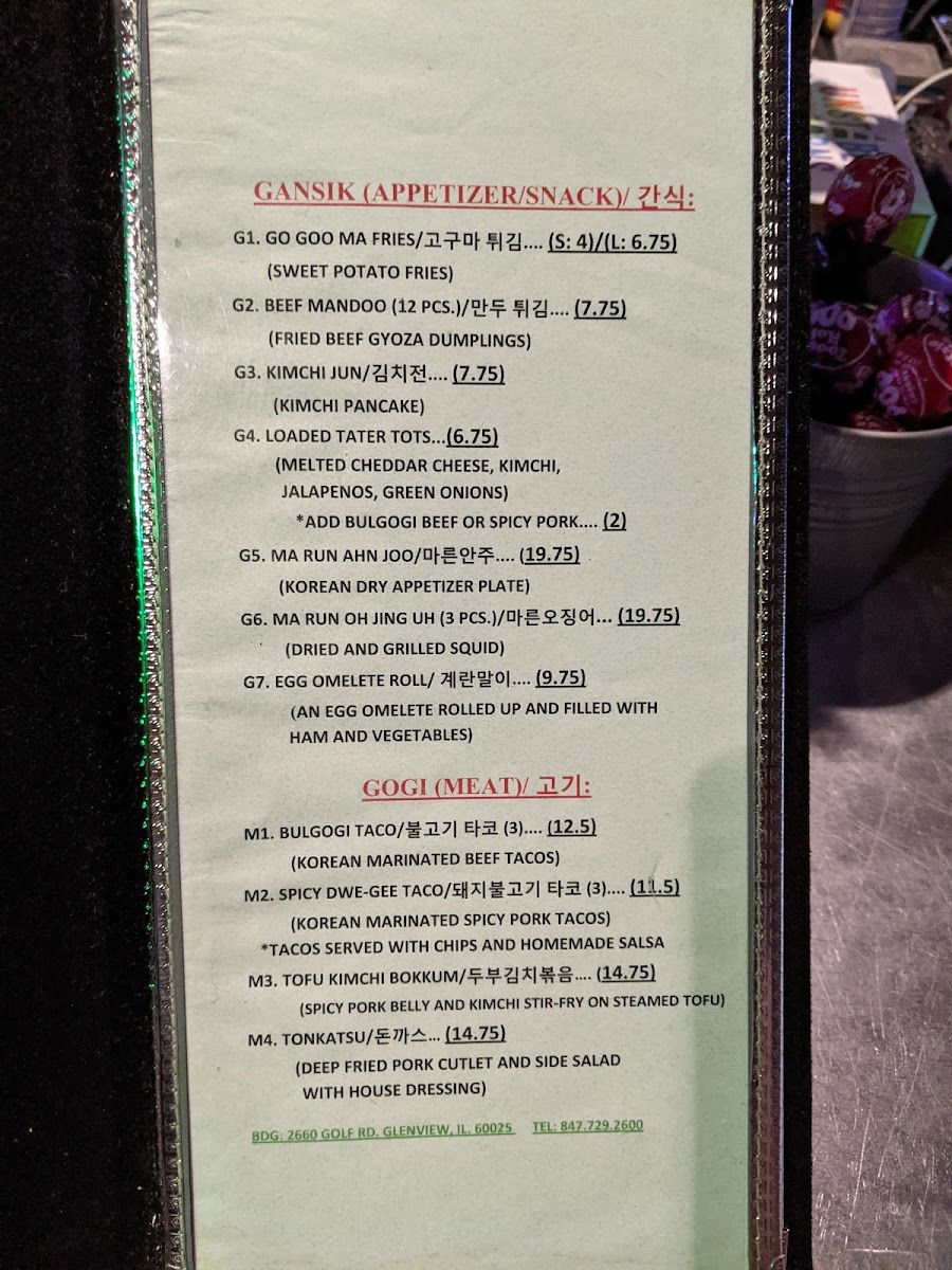 B.D.G - Glenview Menu